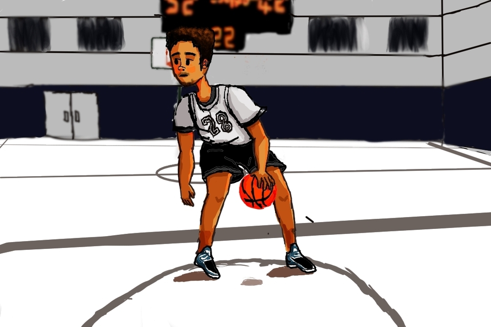 A digital painting made this month. A Boy with a passion for basketball, practicing to perfect his skills.
